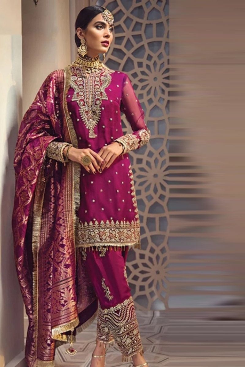 Full suit on organza with Banarsi jacquard dupatta
