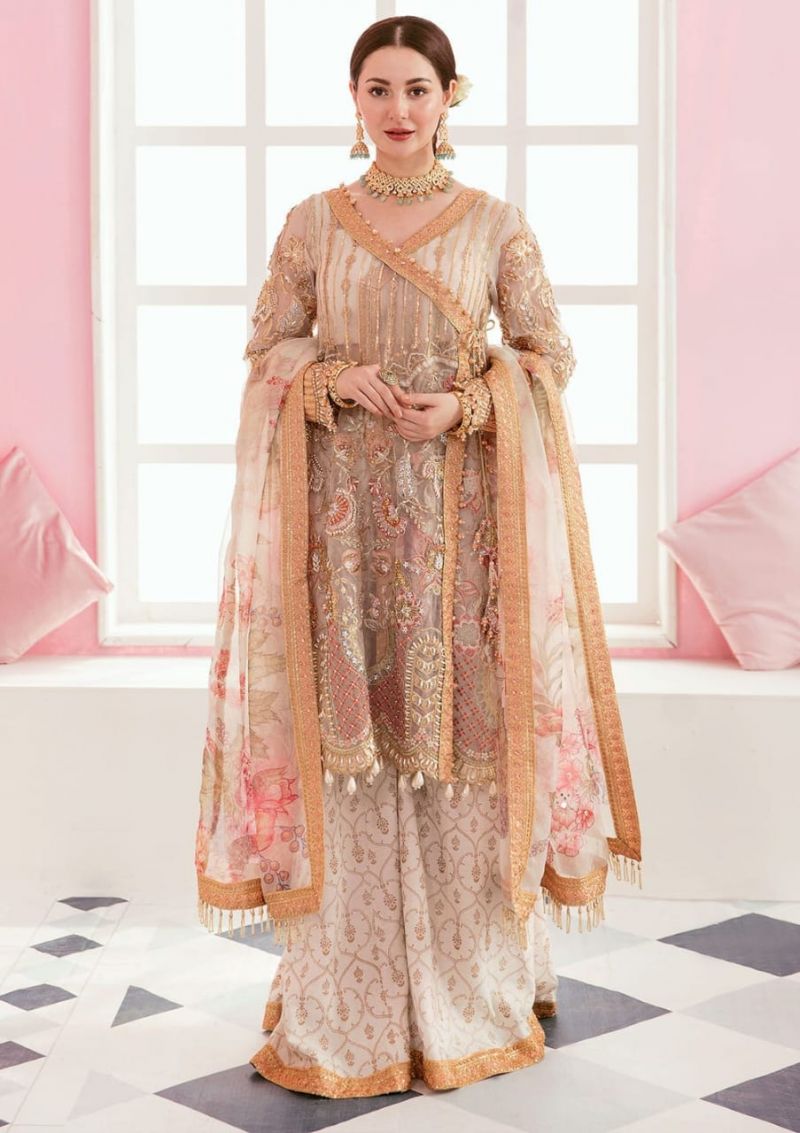 •Embroidered Shamooz Silk Hand Embellished Sleeve Border,