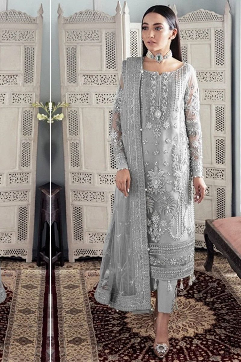 Embroidered Addawork Formal Bridal Collection-Silver Grey