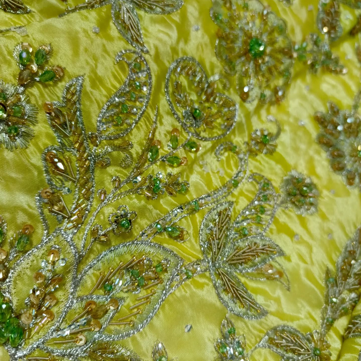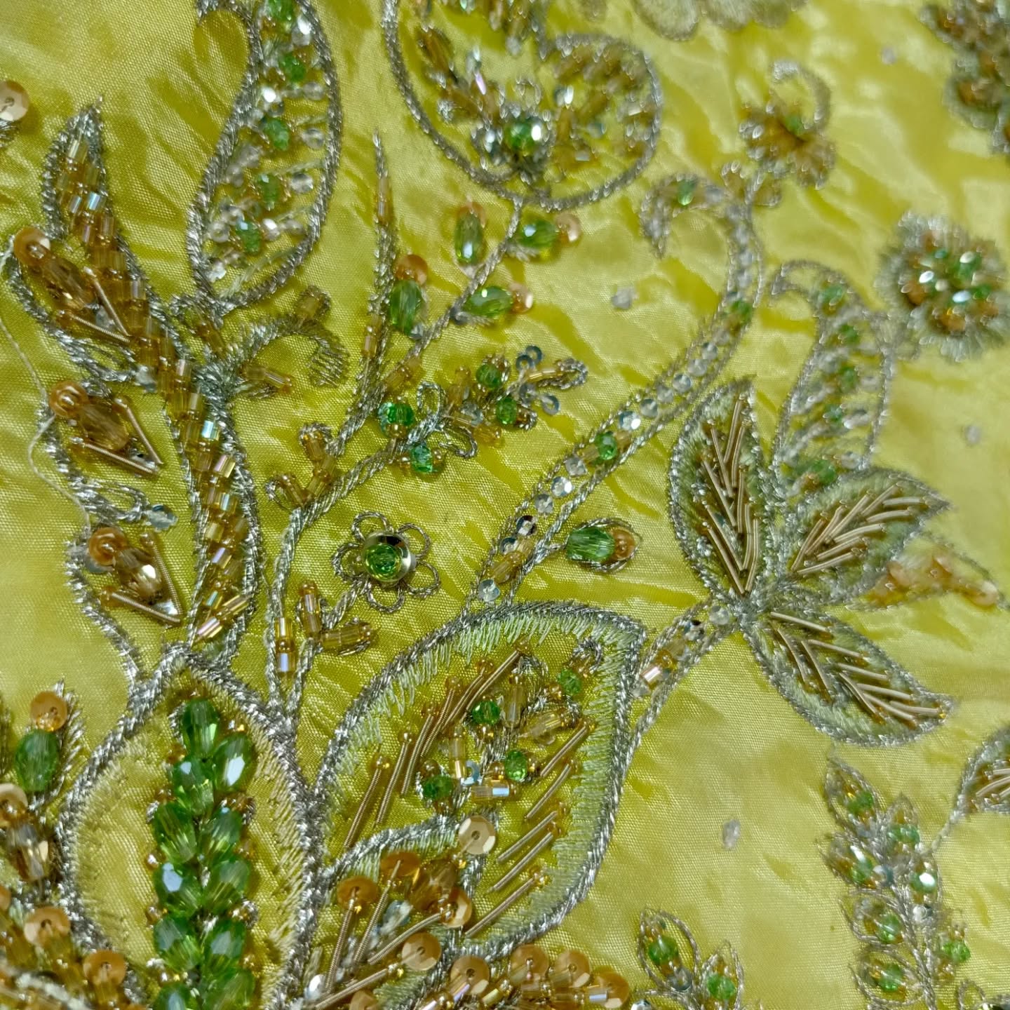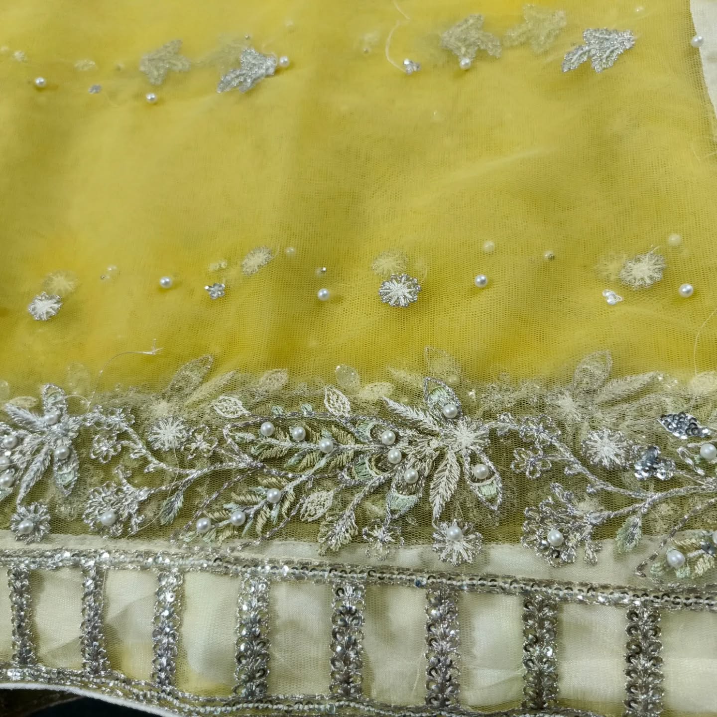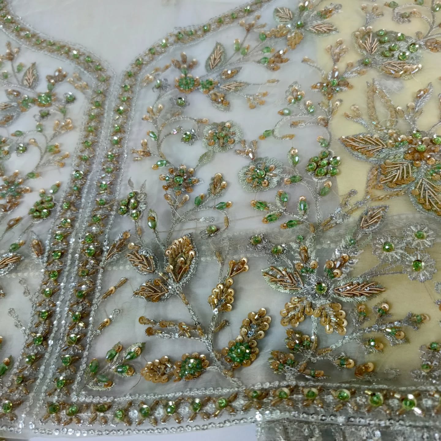 Our Malika Jahan features a blouse lehenga inspired by Mughal Architecture frescos, it's a testament to luxurious craftsmanship, fabricated with intricate 3D gotta work intermixed with sumptuous sequins and pearl accent artistry. This masterpiece is brought to life using our signature embroideries and hand-embellished motifs and borders. The classic combo of kundan & zari exudes sophistication, making it a perfect choice for a regal look.