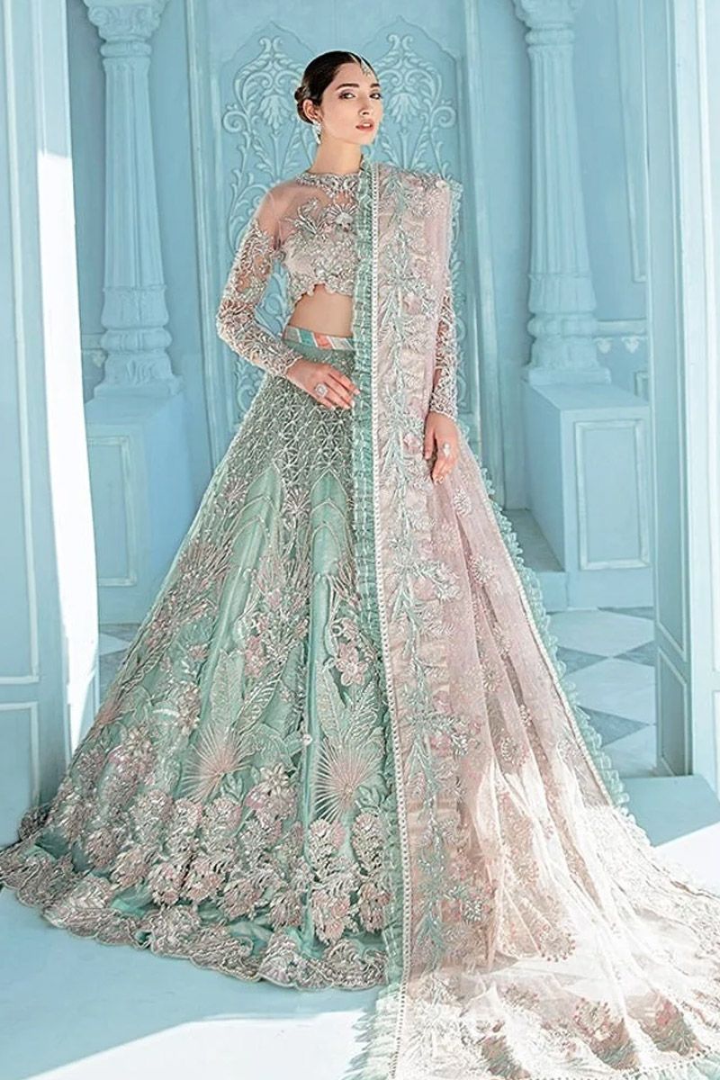 bareeze net embroidery hand made lehenga front