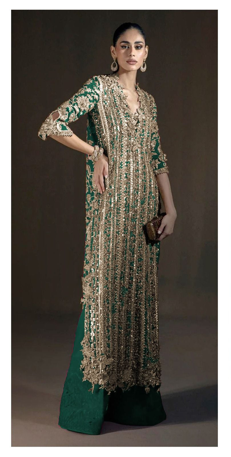 Illustrious details on a green silhouette reflecting a profound appreciation for timeless traditions.